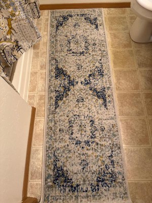 [This review was collected as part of a promotion.] The rug doesn’t look anything like it does in the pictures. The design can barely be seen and the colors are much bolder than they appear. Wanted the distressed look. Not what I got