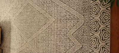 This rug has been great for our main living room. I am constantly surprised by my vacuum co tents because it never looks dirty. The unevenness of the design bothers my husband a little, but I do not have a problem with it. It is neutral enough to match any season of decor. Overall- great buy.