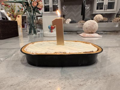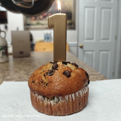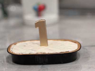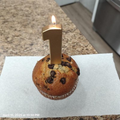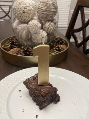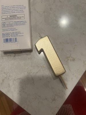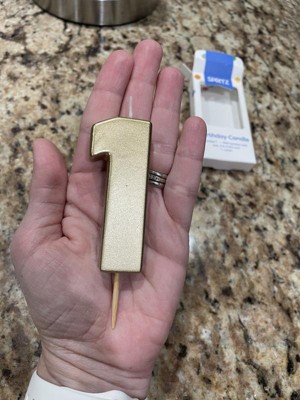 Cute little gold number "1" candle for birthdays or yearly celebrations! Gold coating is nice and Shiney, not overly which is also great. Flame is nice and stable but the wick seems a bit thin so if it goes out more than twice you might loose the wick from burning it up. Would recommend if you love gold themes!