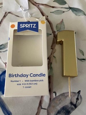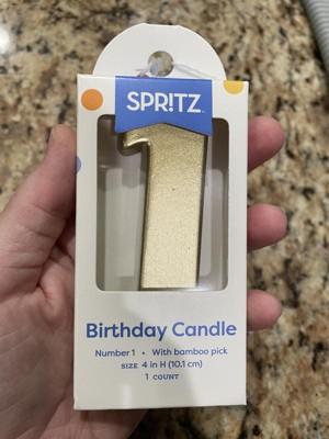 Celebrate in style with the Number 1 Gold Candle from Spritz™, a shimmering addition to any birthday or milestone event. Standing at 4 inches tall and crafted from quality wax, this elegant candle brings sparkle to cakes and desserts. Lightweight yet sturdy, it's the perfect way to mark a special occasion with a golden glow.