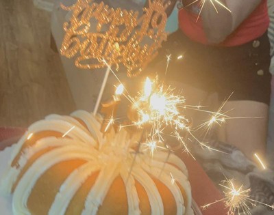 The top frosting of the cake was covered in the black residuals fall from the burning sparkler flame