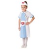 - Costume Includes: Dress, Attached Apron and Watch, Headband, Bag