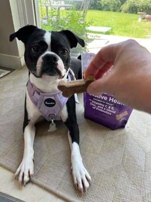 [This review was collected as part of a promotion.] My 5yo Boston terrier loves these treats! Every day after her afternoon outing, she’d stay by the door waiting to collect her reward. BTs notoriously have gas problems and her vet has advised trying an over the counter digestive treatment. So getting to test this product was well timed. It does seem that she has less gas but not completely eliminated. But less is great! I also liked that it contains other healthy nutrients and vitamins like C, E, and zinc. The price point is perfectly reasonable. I’d definitely recommend this product.