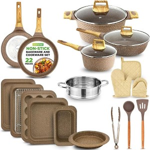 Nutrichef 22-Piece Non-Stick Cookware and Bakeware Set - Maroon Marble