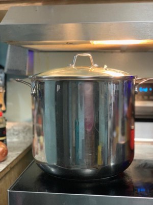 - Commercial grade stockpot features mirror-polished exterior and brushed non-reactive stainless steel interior