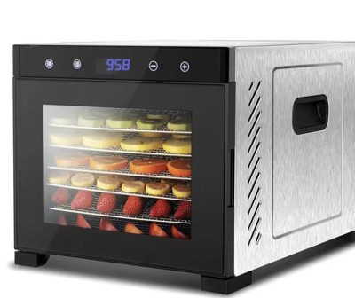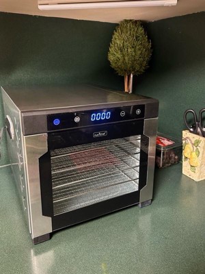 - PERFECT FOR PRESERVATION: Food dehydrator with glass front door and 6 stainless steel trays to perfectly preserve your fruit, snacks, vegetables, jerky, bread, flowers, and more