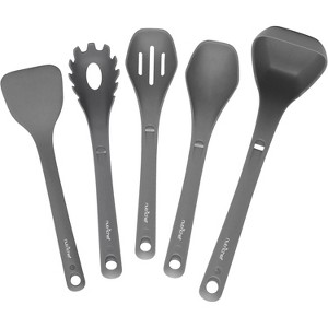 NutriChef Kitchen Cooking Utensils Set-Includes Spatula, Pasta Fork, Solid Spoon, Slotted Spoon & Tool Seat,(Gray)