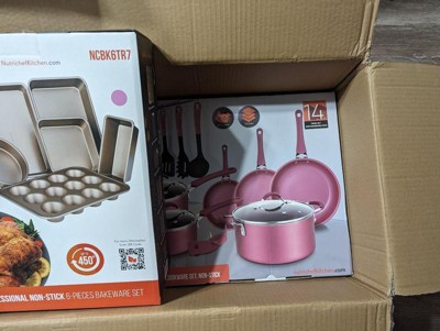 NutriChef Metallic Nonstick Ceramic Cooking Kitchen Cookware Pots and Pan Baking Set with Lids and Utensils, 20 Piece Set, Maroon Pink