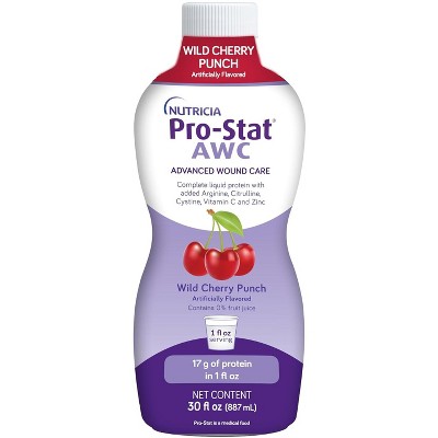 Nutricia Pro-Stat Complete Liquid Protein Wild Cherry Punch 30 Oz Sugar-Free, High-Protein Supplement for Recovery, Case of 6