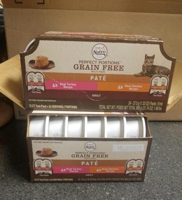 Before this i was doing a whole small can for every meal. It was more expensive, annoying, loud and smelly. Then when i started cutting them in half it still just didnt seem like enough food for the whole day. The nutro packets are awesome though!! My cat runs to the sound of me snapping the package into two. It has a little more than one can of regular sized cat food id say. Shes been a steady weight of 7 pounds!! :) I love the ingredients too. My cat gets constipated on their tuna pate so be mindful of that.