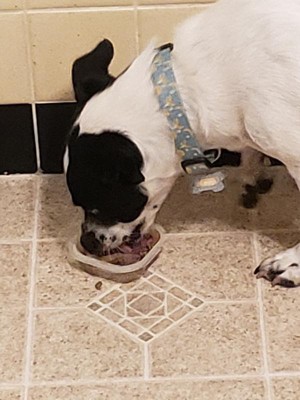 [This review was collected as part of a promotion.] I received this for free for my honest review. My little chubs will only eat it mixed in with his hard food but boy does he devour it. The smell usually bothers me but with this kind the smell is tolerable.