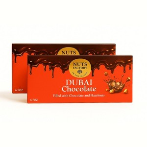 The ultimate in luxurious deliciousness! Satisfy your hazelnut fix: Dubai-style milk chocolate bars made with the finest premium rich Belgian chocolate, and packed with high quality imported hazelnuts, nutty cream, crispy kataifi. Each bar is handcrafted and hand-packed in the USA. Includes 2 Premium Bars (2 Pack).