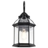 Collection: Boxwood, Material: Metal, Width: 9.875", Height: 19", Depth: 9", Height From Outlet Box: 7.25", Number Of Bulbs: 1, Wattage: 100 Watts, Moisture Rating: Wet Rated, Desc: The Boxwood collection's open design and clear beveled glass gives the feeling of delicacy as well as an understated air of gracefulness. This collection is offered in white, rustic bronze, and textured black and features a wide breadth of application solutions. This stately collection's effortless and elegant design is sure to deliver a great first impression of your home. Rated: Wet.,