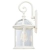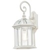 Collection: Boxwood, Material: Metal, Width: 9.875", Height: 19", Depth: 9", Height From Outlet Box: 7.25", Number Of Bulbs: 1, Wattage: 100 Watts, Moisture Rating: Wet Rated, Desc: The Boxwood collection's open design and clear beveled glass gives the feeling of delicacy as well as an understated air of gracefulness. This collection is offered in white, rustic bronze, and textured black and features a wide breadth of application solutions. This stately collection's effortless and elegant design is sure to deliver a great first impression of your home. Rated: Wet.,