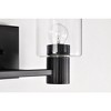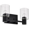 Simplicity takes center stage as the Clarksville 60-8062 two-light vanity light celebrates the beauty found in uncomplicated design. The matte black finish adds a touch of sophistication, and when paired with clear glass embraces a minimalist aesthetic, allowing the pure essence of light to shine through. Modernity is seamlessly woven into the fixture, offering clean lines and a slim silhouette that harmonizes with any setting, a testament to the enduring beauty found in simplicity and classic charm. Clarksville 14-inch two light vanity light finished in matte black with clear glass / Accepts two 60W medium base bulbs or LED equivalent / Dimensions: 14.00 inches Width x 7.25 inches Height x 5.88 inches Extends / Transitional style for today's home lighting / Steel Construction / Matte Black Finish / Clear Glass / Damp Location Rated / 1-Year Warranty / Instructions and mounting hardware included for easy installation. ,