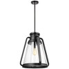 Collection: Everett, Material: Steel, Finish Color: Matte Black, Width: 17.88", Height: 21", Depth: 17.88", Lamping Type: Incandescent, Number Of Bulbs: 1, Wattage: 60 Watts, Dimmable: No, Moisture Rating: Dry Rated, Desc: Glass and overlaying metal create a nice depth with the Everett 60-7554 large pendant. The clear, tapered glass provides 360-degree illuminations. When paired with a vintage bulb, it creates a maritime-vintage style. A matte black finish on the fixture body, rods, and swivel canopy results in a style suited to many kitchen decors or applications of your choosing. Uses one 60-watt incandescent medium base bulb Fixture measures 17.875 inch diameter x 21 inch height Rated for indoor use in dry locations Finished in matte black with clear glass Mounting hardware and installation instructions included Limited one year fixture warranty. Canopy Included: Yes / Canopy Diameter: 5.00 / Rod Length(s): 36.00 / Shade Included: Yes / Shade Dimensions: 14.33 x 14.69. ,