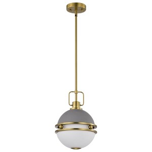 Collection: Everton, Material: Steel, Finish Color: Matte Gray, Width: 10", Height: 13.25", Length: 10", Lamping Type: Incandescent, Number Of Bulbs: 1, Wattage: 60 Watts, Dimmable: Yes, Moisture Rating: Dry Rated, Desc: Modern illumination with beautiful, subtle details, elevates the Everton 60-7875 small pendant's style to grand heights. With spherical, opal etched glass softly diffusing the light, creating a warm and inviting glow. A rich brass finish is paired with a soft, matte gray, creating a wonderful balance of color. Your home is a haven and Everton is ideal for today's stylish luminaires. Accepts one 60 watt A19 medium base bulb or LED equivalent / Steel Construction / Etched Opal Glass / Matte Gray Finish / Dry Location Rated / 1 Year Warranty / Instructions and mounting hardware included for easy installation / Experience the perfect blend of style and functionality with the Everton collection, tailored to suit your unique taste and elevate your living spaces.. ,