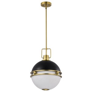 Collection: Everton, Material: Steel, Finish Color: Matte Black, Width: 14", Height: 18", Length: 14", Lamping Type: Incandescent, Number Of Bulbs: 2, Wattage: 60 Watts, Dimmable: Yes, Moisture Rating: Dry Rated, Desc: Modern illumination with beautiful, subtle details, elevates the Everton 60-7877 medium pendant's style to grand heights. With spherical, opal etched glass softly diffusing the light, creating a warm and inviting glow. A rich brass finish is paired with a soft, matte gray, creating a wonderful balance of color. Your home is a haven and Everton is ideal for today's stylish luminaires. Accepts two 60 watt A19 medium base bulbs or LED equivalent / Steel Construction / Etched Opal Glass / Matte Gray Finish / Dry Location Rated / 1 Year Warranty / Instructions and mounting hardware included for easy installation / Experience the perfect blend of style and functionality with the Everton collection, tailored to suit your unique taste and elevate your living spaces.. ,