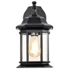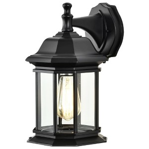 Collection: Hopkins, Material: Aluminum, Finish Color: Matte Black, Width: 7.38", Height: 13.22", Length: 8.57", Depth: 8.57", Backplate Width: 5", Backplate Length: 5.66", Lamping Type: Incandescent, Number Of Bulbs: 1, Wattage: 100 Watts, Dimmable: Yes, Moisture Rating: Wet Rated, Desc: Reminiscent of Tudor-inspired style, the Hopkins Outdoor Lighting Collection guarantees an elegant grace to your home's exterior. Perfect illumination is provided with the multiple clear glass panes showcasing the bulb; go with a vintage-filament bulb for maximum effect. A matte black finish accentuates the curves, and planes of the die-cast aluminum fixture body with its rich depth. The time-honored design of the Satco #60-6118 large wall light will shine brightly on your homes exterior landscape for years to come. Accepts one 100W Medium Base Bulb / Die-cast Aluminum Construction / Clear Glass / Matte Black Finish / Dimensions: 13.22 inches high x 7.38 inches wide x 8.57 inches extends / Wet Loca