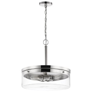 Collection: Intersection, Material: Steel, Finish Color: Polished Nickel, Width: 17", Height: 17", Depth: 17", Chain Length: 48", Lamping Type: Incandescent, Number Of Bulbs: 3, Wattage: 60 Watts, Dimmable: No, Moisture Rating: Dry Rated, Desc: The blend of styles (modern, industrial and chic) is incorporated beautifully in the design of the Intersection 60-7530 pendant. The clear glass shades showcases vintage filament bulbs for a touch of nostalgia. The luster of the rich, burnished brass will pair superbly with existing finishes. Apply to a kitchen island or above a sink, or install several in a dining room: a great design for any room. Uses three 60-watt incandescent medium base bulbs Fixture measures 17 inch diameter x 17 inch height Rated for indoor use in dry locations Finished in burnished brass with clear glass Adjustable height to suit your needs Limited one year fixture warranty. Canopy Included: Yes / Canopy Diameter: 4.88 / Sloped Ceiling Adaptable: Yes / Chain Le