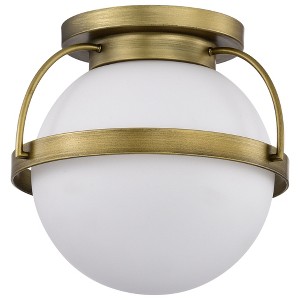 Collection: Lakeshore, Material: Steel, Finish Color: Natural Brass, Width: 13", Height: 11.88", Length: 13", Lamping Type: Incandescent, Number Of Bulbs: 1, Wattage: 60 Watts, Dimmable: Yes, Moisture Rating: Damp Rated, Desc: Unleash the transformative power of romance with the Lakeshore 60-7771 medium flush mount. Let its matte black and natural brass finishes, combined with the allure of white opal glass, create an atmosphere where warmth and style converge. Whether illuminating your living room, bedroom, or dining area, these fixtures will set the perfect mood for any occasion, from cozy nights into elegant gatherings. Embrace the possibilities and elevate your living space with the Lakeshore Collection, a testament to the enduring allure of true, and exquisite design. Accepts one 60 watt ST19 medium base bulb or LED equivalent / Steel Construction / White Opal Glass / Matte Black Finish / Damp Location Rated / 1 Year Warranty / Instructions and mounting hardware included for ea
