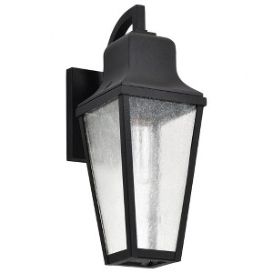 Whether you have a modern urban retreat or a classic countryside home, the Lawrence 60-8132 one light outdoor medium wall lantern effortlessly adapts to your unique style. Its matte black finish is the perfect complement to any outdoor setting, and the �English bobby-inspired� top design contrasts beautifully with the elongated structure. The clear seeded glass adds a touch of age, casting a warm and welcoming glow to greet your guests in style. Versatility is at the heart of Lawrence, a thoughtfully designed fixture providing a timeless and cohesive aesthetic that seamlessly integrates with various architectural styles. Lawrence 6.13-inch one light medium outdoor wall lantern finished in matte black with clear seeded glass / Accepts one 100W medium base bulb or LED equivalent / Dimensions: 6.13 inches Width x 16.75 inches Height x 9.00 inches Extends / Traditional style for today's home lighting / Die-cast aluminum construction / Matte Black Finish / Clear Seeded Glass / Wet Location