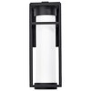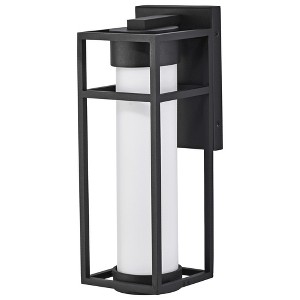 Collection: Ledges, Material: Glass, Finish Color: Matte Black, Width: 5.5", Height: 16", Depth: 6.5", Backplate Width: 8.25", Backplate Length: 1", Lamping Type: LED, Wattage: 6 Watts, Cri: 90, Color Temperature: 3000 Kelvin, Lumens: 550, Dimmable: Yes, Moisture Rating: Dry Rated, Desc: The Ledges 62-1611 LED medium outdoor wall lantern blends a simplistic design with great style. The rectangular framework of the fixture is finished in matte black and highlights the cylindrical opal glass housing the integrated LED module. Perfect for modern homes to add some dynamic and impactful lighting to their exteriors. Fully integrated 6-watt LED Fixture measures 5.5 inch width x 16 inch height x 6.5 inch extends Rated for wet locations with full exposure Finished in matte black Mounting hardware and installation instructions included Limited three year fixture warranty. Rated Lifetime Hours: 30000 / Operating Temperature: -20C (-4F) to a maximum of +40C (+104F) / Back Plate Height: 1.