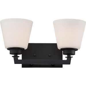 Collection: Mobili, Material: Glass, Finish Color: Aged Bronze, Width: 15.38", Height: 7.88", Depth: 6.88", Number Of Bulbs: 2, Wattage: 100 Watts, Moisture Rating: Damp Rated Desc: Mounting Direction: Up/Down / Shade Included: TRUE / Warranty: One Year. , Material: Glass, Finish Color: Aged Bronze, Width: 15.38", Height: 7.88", Depth: 6.88", Number Of Bulbs: 2, Wattage: 100 Watts, Moisture Rating: Damp Rated
