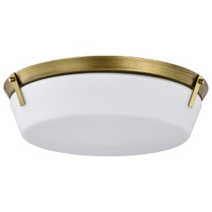 Collection: Rowen, Material: Steel, Finish Color: Natural Brass, Width: 18.5", Height: 5", Length: 18.5", Lamping Type: Incandescent, Number Of Bulbs: 4, Wattage: 60 Watts, Dimmable: Yes, Moisture Rating: Damp Rated, Desc: The Rowen 60-7751 flush mount is a versatile lighting fixture that exudes elegance and sophistication. The natural brass finish gives the fixture a warm and inviting look, while the etched white glass diffuses the light to create a soft and ambient glow. Providing ample illumination, makes the Rowen flush mount perfect for larger spaces or areas that require bright lighting. Accepts four 60 watt A19 medium base bulbs or LED equivalent / Steel Construction / Etched White Glass / Natural Brass Finish / Damp Location Rated / 1 Year Warranty / Instructions and mounting hardware included for easy installation / Experience the perfect blend of style and functionality with the Rowen collection, tailored to suit your unique taste and elevate your living spaces.. ,