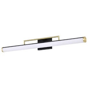 Collection: Solano, Material: Steel, Finish Color: Black/Brushed Brass, Width: 36", Height: 4.25", Length: 4.25", Backplate Width: 4.5", Backplate Length: 6", Lamping Type: LED, Wattage: 39 Watts, Cri: 90, Color Temperature: 3000 Kelvin, Lumens: 3120, Dimmable: Yes, Moisture Rating: Damp Rated, Desc: The design of the Solano 62-1538 integrated LED large bathroom vanity light is sleek and minimalist, with a simple yet elegant shape. The stylish fixture is finished in black with brushed brass accents accentuate the clean lines and broad backplate. A white acrylic lens houses the diodes to softly diffuse the light for a warm and comfortable glow. Update a powder room or master bathroom with the Solano vanity light, stunning lighting for today's home. Integrated LED featuring 39 watts with 3120 lumens, 3000K and 90 CRI / Steel Construction / White Acrylic Lens / Matte Black Finish / Damp Location Rated / 1 Year Warranty / Instructions and mounting hardware included for easy installation