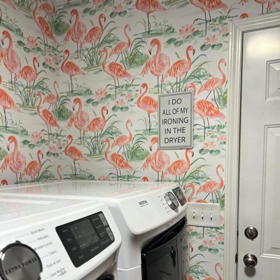 NuWallpaper Flamingo Beach Peel & Stick Wallpaper Pink: Removable Vinyl, Self-Adhesive, Animal Pattern, 30.75 Sq Ft Coverage