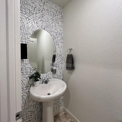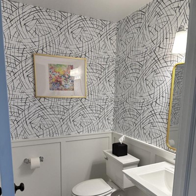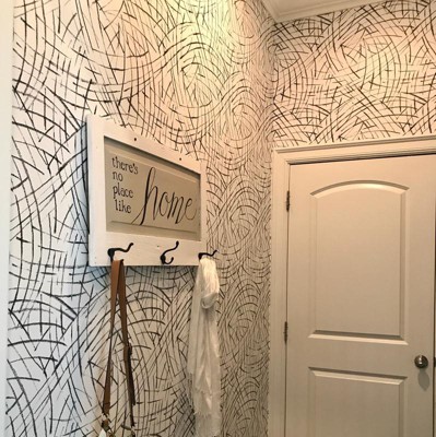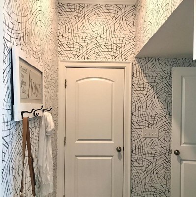 Adorn your walls with this effortlessly chic peel and stick wallpaper. Black brushstrokes pop against a crisp white background, creating an abstract design with a contemporary edge. Black Imprint Peel and Stick Wallpaper comes on one roll that measures 20.5 inches wide by 18 feet long. This wallpaper has a design repeat of 21 inches with a straight match. This product should NOT be applied to textured walls – smooth clean, dry, painted surface only (no Non-Stick paint or soap residue).
