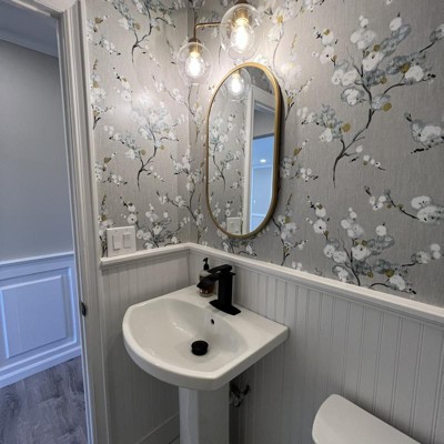 A: Hi PapaJoe, As long as you follow the proper directions for installation and it is not being directly hit with water, then you should have no problems installing this in your bathroom. We recommend using the smoothing tool in the NuWallpaper application kit to make sure that the NuWallpaper gets a firm bond with the wall. Best of luck with your décor project!