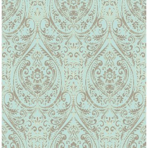 NuWallpaper Nomad Damask Peel & Stick Wallpaper: Removable, Self-Adhesive, Washable, Turquoise Blue, 30.75 Sq Ft Coverage