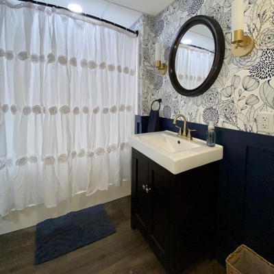 Took me 20 years, but I finally decided to paint my grandmother's old brown china cabinet white and was looking for something to line the interior back wall with. This design is so elegant and sharp looking. The navy blue on white is fresh and stunning without being overwhelming. It was absolutely perfect to complete my vision. The paper itself was easy to install and I took the time to match the pattern between the shelves. It is a shame that Wall Pops does not provide the opportunity to upload photos! I highly recommend buying an inexpensive wallpaper smoother brush that will make your job a lot easier to sweep over the paper as you're applying it to make sure it goes on smoothly without creases and to eliminate air bubbles.