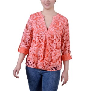 NY Collection Womens Burnout Print Floral Basic T-Shirt