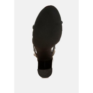 The sandals are one of a kind with the eccentric chut of chain detail on the sandals. The patent faux leather upper has a beautiful sheen while the pin buckle fastening ensures a snug fit. The comfortable cushion insoles cut strain and offer a relaxed experience. Type: Heels Upper Material: Patent Faux Leather Outer Sole: TP Rubber Open Round Toe Block Heel Cut Out Chain Detail Pin Buckle Ankle Strap Fastening Plush Cushion Insole Heel Height: 3.5 inches SH5403