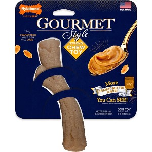 Inspired by that distinct “this is the life” feeling of satisfaction, Nylabone’s Gourmet Style chew toys are made to wow flavor-obsessed dogs who crave a new type of chewing experience. Applying decades of expertise, this latest formula is uniquely crafted with enticing flavor bits you can see—leaving even the most particular pups with a sense of chewing gratification! Satisfy your furry friend's natural chewing instincts with these veterinarian-recommended chew toys for dogs that are proudly made in the USA.
