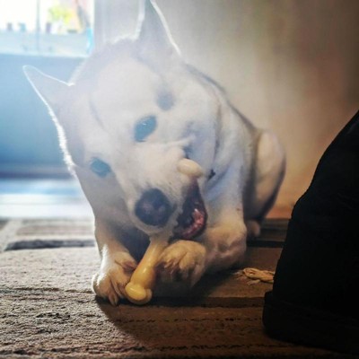 [This review was collected as part of a promotion.] My girl smelled that this package 📦 was for her before it was opened. The treats must have had a strong smell. She was so excited. The treats are extremely difficult to load into the bone. I had to have my husband help. It even dented my dresser when he tried to smack it inside. But maybe it's better that way because my dog wasn't able to get them out either, which left her occupied for hours.. I'm guessing it will be there for days, maybe weeks. She's going to have to lick it out. Lol. We love its durability, and my girl loved the taste. She's chomping away
