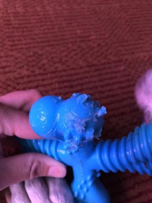 [This review was collected as part of a promotion.] I have a large dog! And he is a bully breed so he can chew! He has destroyed multiple dog beds and endless toys. The toy he had a harder time chewing… yay!!! He did manage to get some of it chipped off but it held up really well against his powerful jaws! I was thoroughly impressed!