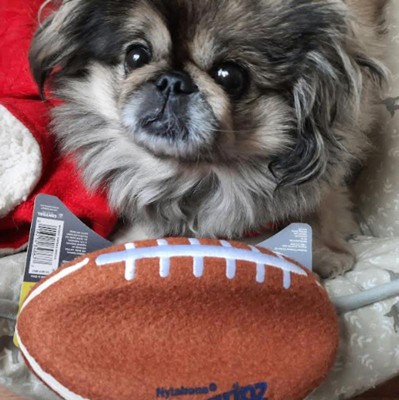 [This review was collected as part of a promotion.] My dog loved the nylabone football. It is the prefect size for him since he is a very small dog. He has not stopped playing with it since we received it. It is holding up great and not falling apart and is just like new. Great quality.