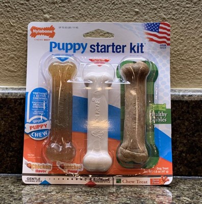 This veterinarian approved Puppy Starter Kit features three Nylabone chews specifically selected for specific stages of your puppys teething. Keep plenty of Nylabone chews on hand to encourage safe and non-destructive chewing.