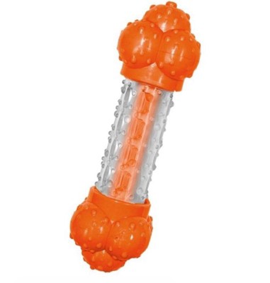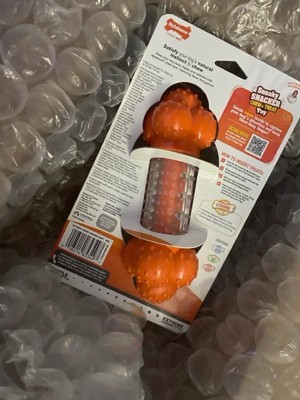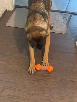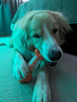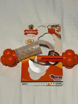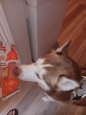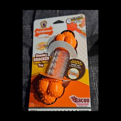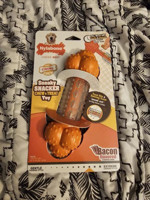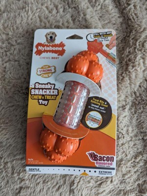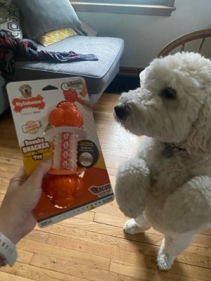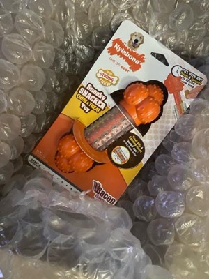 [This review was collected as part of a promotion.] My dog loves this chew toy from Nylabone. It's extremely durable. The scent of the toy keeps my dog busy chewing all the time. It's also great to give your dog something to do by putting treats in the toy. Nothing beats Nylabone when it comes to dog toys.