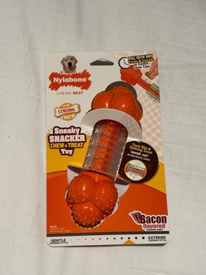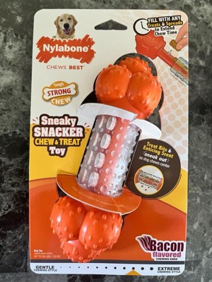 [This review was collected as part of a promotion.] I received this sneaky snacker dog treat toy free from influenster in exchange for an honest review. I have a great pyrenees border Collie mix , she loves this toy. It was very easy to put a treat in the center and secure. It's easy to clean and the perfect size for my 60lb pup. She has a very powerful bite and destroys her toys in less than 10 minutes usually. This toy is holding up! I would recommend this toy to even power chewer dogs.