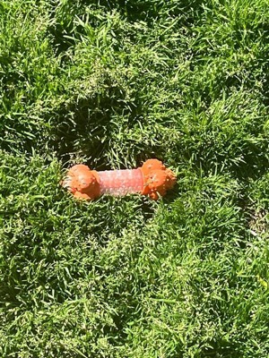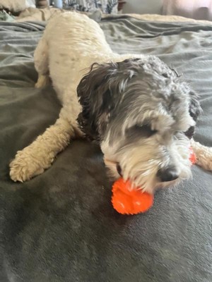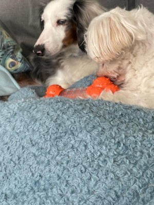 [This review was collected as part of a promotion.] Even though it’s a large toy, my little maltese and dachshund love it. I put the mini milkbones in the treat part. It doesn’t look like they have been able to actually get any treats, but they like chewing on it as well.