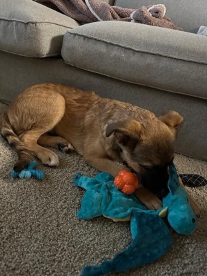 [This review was collected as part of a promotion.] My dog is obsessed with this toy!!! Literally will spend an hour just chewing on it trying to get the treats out. It’s perfect for when I’m on calls or am needing something to occupy my 7 month old wild lab! Will def be repurchasing!