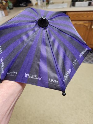 - No longer must your screen endure the gaze of sunlight, drizzle of rain, or bad lighting. Inspired by Wednesday's iconic purple umbrella, this miniature accessory attaches effortlessly to the back of a phone or tablet and provides your screen with maximum shade.