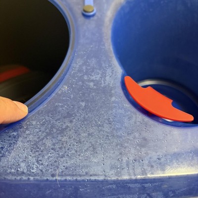 Q: First time I used it, I found a small black piece of soft plastic on the floor. It would fit in where the red fresh water lever pulls up. But it doesn't stay in place. Is it broken?