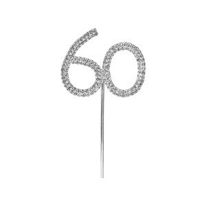 O'Creme Rhinestone Silver-Colored Number-60 Cake Topper 2 Inch