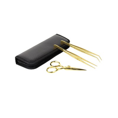 O'Creme Set of Culinary Tweezer Tongs 8 Inch Straight, 8 Inch Offset and 8 Inch Curved, Plus Super Sharp Chef Scissors, Total 4 Pieces (Gold)